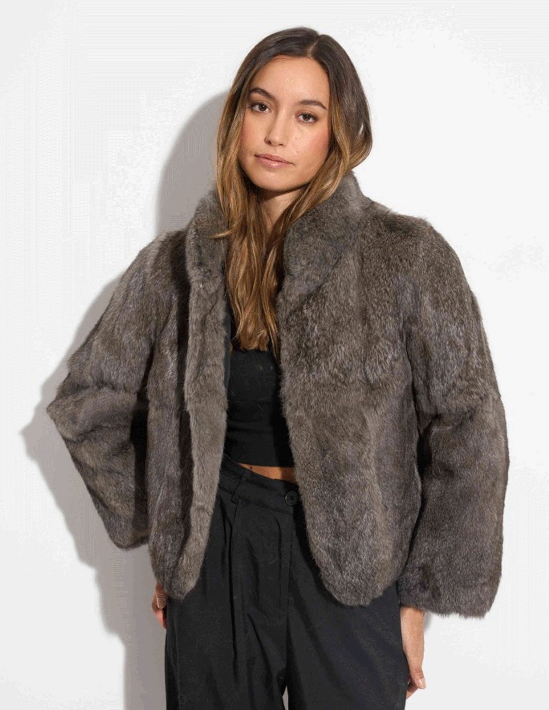 La couleur naturelle de la veste d'invité en fourrure de lapin est parfaite pour toutes les occasions.