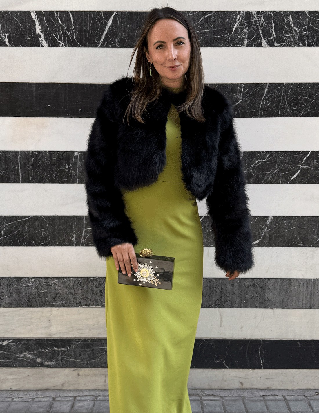 Élégance, douceur et style à la fois. Cette veste de torero en fausse fourrure noire de qualité supérieure est devenue l'une de nos pièces préférées en raison de sa polyvalence et de sa finition impeccable. Fabriquée en fourrure synthétique de haute qualité, elle est extrêmement douce et confortable, ce qui lui confère une touche sophistiquée sans compromis sur le confort.