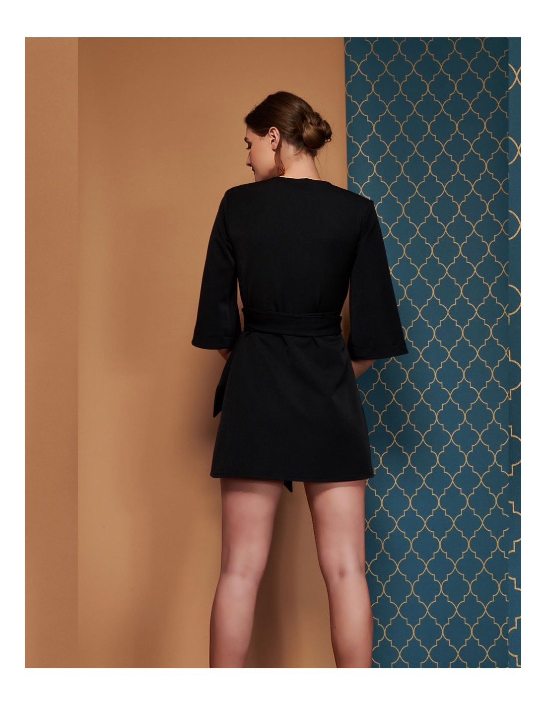 Cette robe avec kimono croisé et ceinture est idéale pour les fêtes. Vous pourrez tirer profit de cette pièce simple aussi bien pour des événements que pour des looks décontractés avec une chaussure plate. Une pièce très facile à combiner avec différents tons et tissus.